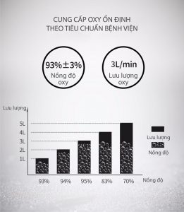 - Nồng độ oxy: 93% ±3%; theo tiêu chuẩn y tế