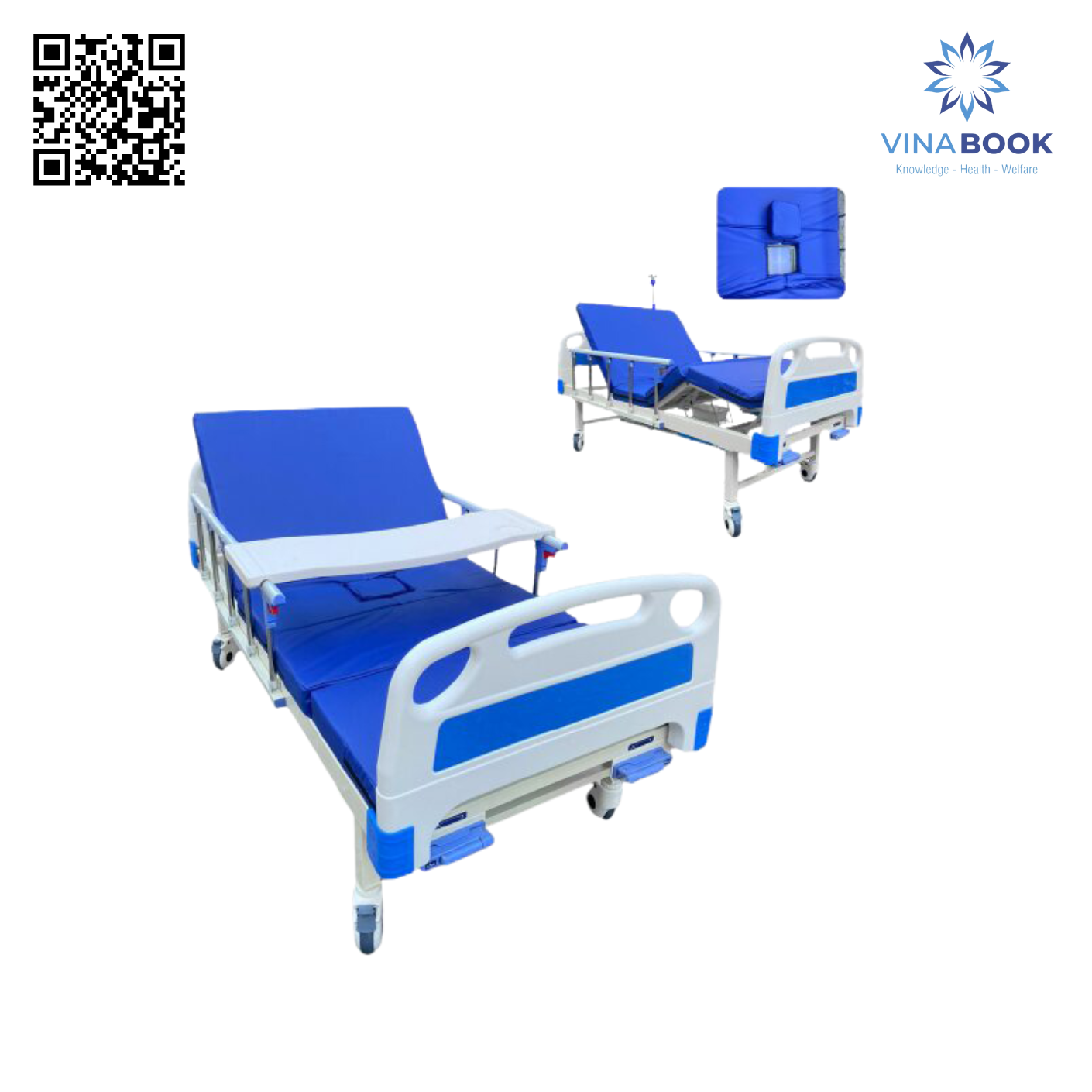 Ngoài ra, sản phẩm còn đi kèm bàn ăn, cọc truyền dịch và bô vệ sinh có cần gạt, hỗ trợ bệnh nhân trong sinh hoạt hằng ngày, đặc biệt phù hợp cho người cao tuổi hoặc người nằm lâu cần chăm sóc thường xuyên.