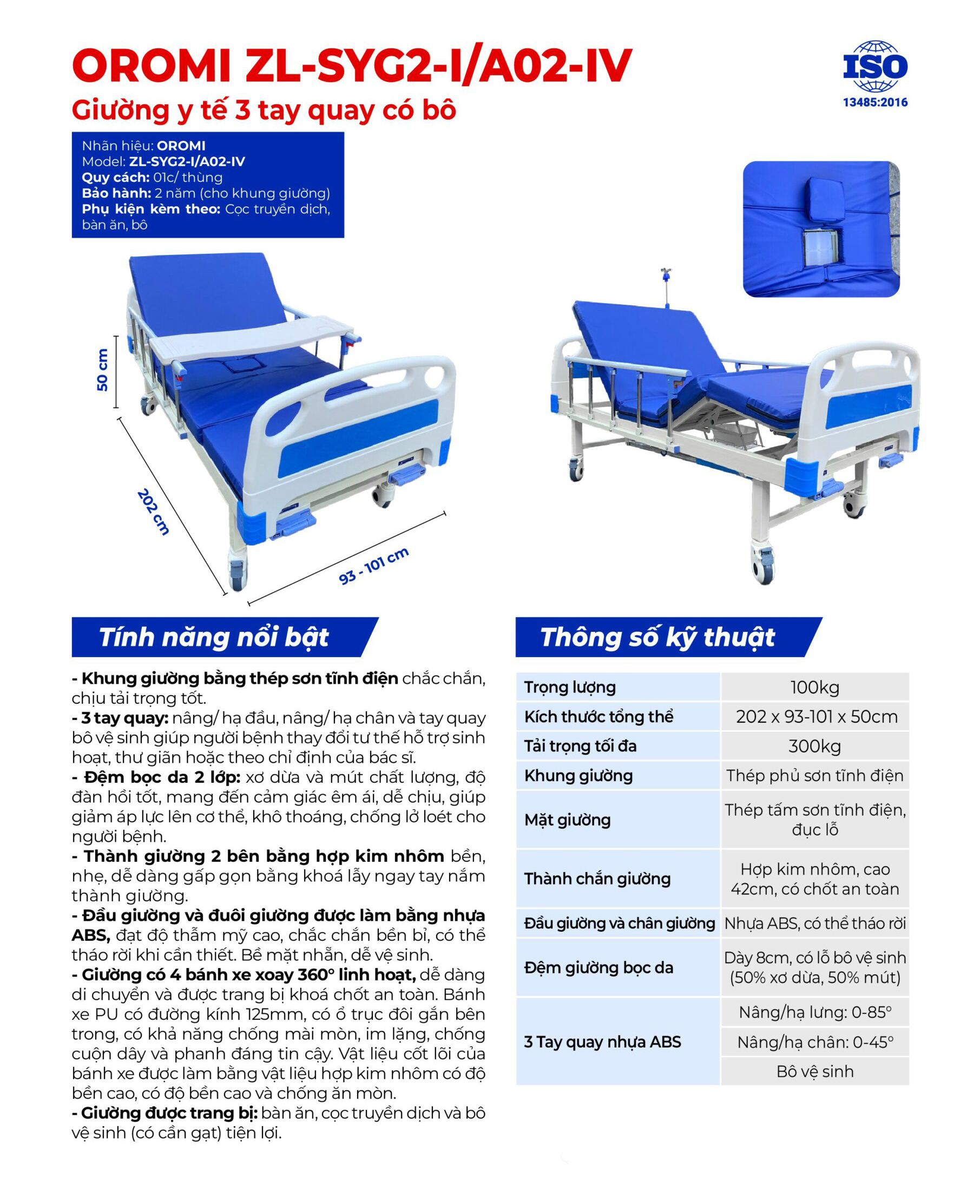 Thông số kỹ thuật giường OR 3 tay quay